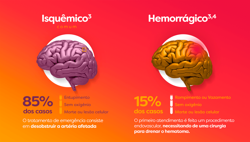 - AVC Isquêmico3, que é o mais comum, representando 85% dos casos: